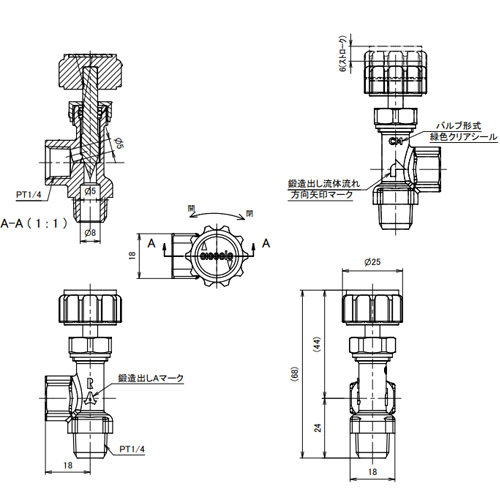 R1/4 inxRc1/4 inニードルバルブ(アングル)
