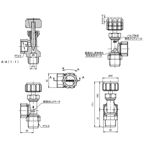 R3/8 inxRc3/8 inニードルバルブ(アングル)