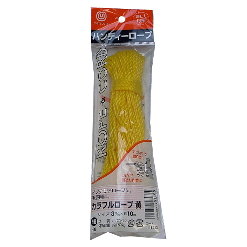 ●径…φ3mm●長さ…10m●色…黄●材質…ポリプロピレン●3打ち●色鮮やかなカラーロープ、識別や結束に。●参考在庫数・商品詳細・サイズ情報はメーカー(参考)URLからもご確認いただけます。 ●最小出荷単位: 1