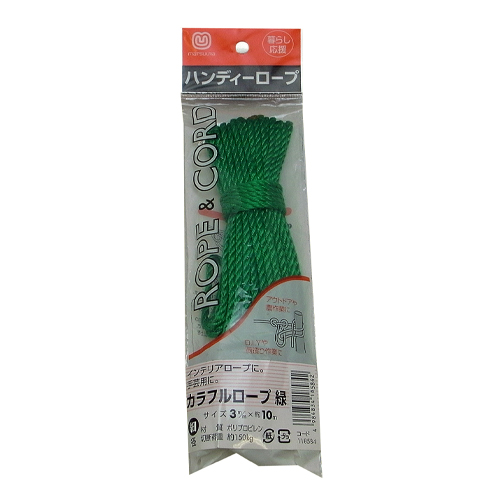 ●径…φ3mm●長さ…10m●色…緑●材質…ポリプロピレン●3打ち●色鮮やかなカラーロープ、識別や結束に。●参考在庫数・商品詳細・サイズ情報はメーカー(参考)URLからもご確認いただけます。 ●最小出荷単位: 1