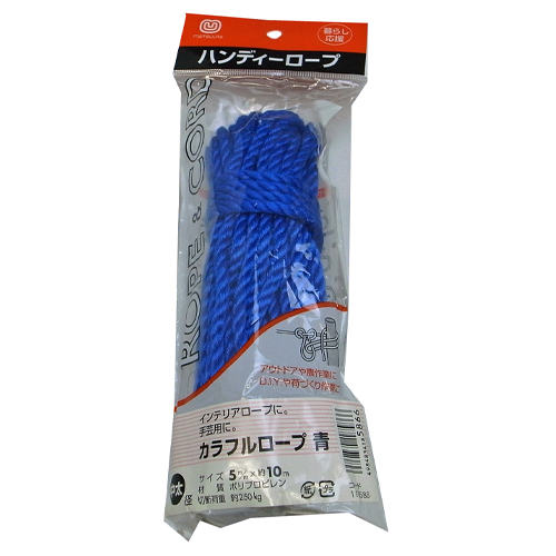 ●径…φ5mm●長さ…10m●色…青●材質…ポリプロピレン●3打ち●色鮮やかなカラーロープ、識別や結束に。●参考在庫数・商品詳細・サイズ情報はメーカー(参考)URLからもご確認いただけます。 ●最小出荷単位: 1