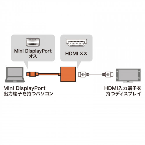 ●メーカー…サンワサプライ●型番…AD-MDPHD04●コネクタ形状…Mini DisplayPortオス-HDMI(タイプA)メス●最大解像度…1920×1200(WUXGA)/1080p(フルハイビジョン)/1600×1200(4:3)●ケーブル長…20cm●ケーブル径…5.5mm●対応機種…パソコン/Mini DisplayPortを搭載する各社パソコンディスプレイ/HDMI入力端子を標準搭載しているテレビ・パソコン用ディスプレイなど※ディスプレイモニター側のMini DisplayPortをHDMIポートに変換することはできません。●Mini DisplayPortを搭載した機器をHDMI接続するための変換アダプタ。●映像信号だけでなく音声信号も変換出力することができます。●ショートケーブル一体型なので取り回しがしやすく、他のインターフェースと干渉することなく接続できます。●ケーブル部は「アルミシールド(ツイストペアケーブル)→アルミシールド→高密度編組シールド」と3重のシールド処理を施し、ノイズ干渉を防ぎます。●錆にも強く、経年変化による信号劣化の少ない金メッキピンを使用しています。●参考在庫数・商品詳細・サイズ情報はメーカー(参考)URLからもご確認いただけます。 ●最小出荷単位: 1
