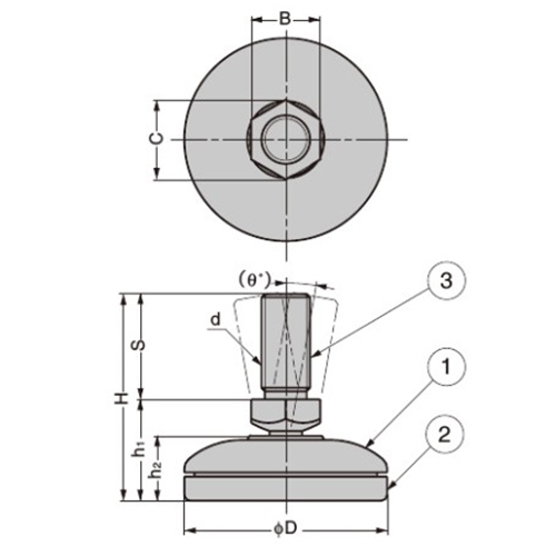 φ30/M8x20.5/100kgアジャスターボルト首振
