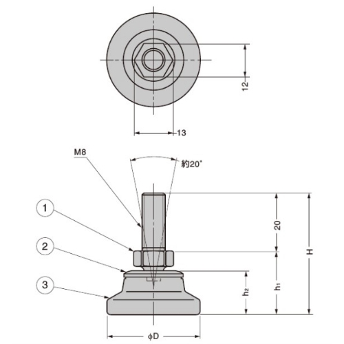 φ40/M8x20/160kgアジャスターボルト(首振)