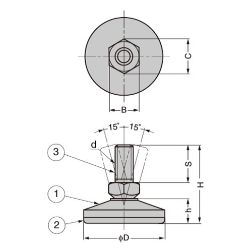 ●サイズ…底面φ40 ねじ部M10×20 全高42.5●材質…本体:ステンレスSUS304(ヘアライン仕上げ)底部:ポリアミドPAねじ部:スチール(有色クロメート)●ベース径(mm)…40●ねじ…M10×20●耐荷重(kg)…160●ベース高さ…13.7●全高…42.5mm●首振り機構(約30°)●約30°の首振り機構付きの為、床面に傾斜がある場合でも本体を垂直に保ちます。●参考在庫数・商品詳細・サイズ情報はメーカー(参考)URLからもご確認いただけます。 ●最小出荷単位: 1