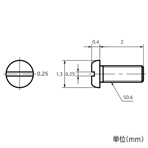 S0.6x2mm精密機械用ナベ小ねじ(2本)
