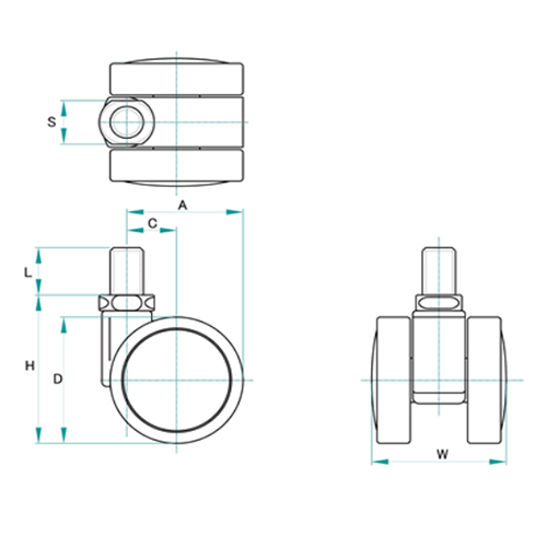 40mmキャスター(ツインホイール/U3/8x16山)
