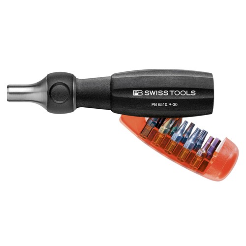 ●メーカー…PBSWISSTOOLS●型番…PB6510.R-30●(セット内容11点)●差込六角対辺…1/4’’●ハンドル全長…159mm●送り角…15°●(+)ビット…#2●(-)ビット…3・4mm●Hexビット…3・4mm●TORXビット…T10・T15・T20・T25●ポジビット…#2●重量…206g●差替式●ビット10個をハンドル内に収納可能。●ラチェット式●ハンドル先端マグネット付●右回転・左回転・固定の切替が可能です。●参考在庫数・商品詳細・サイズ情報はメーカー(参考)URLからもご確認いただけます。 ●最小出荷単位: 1