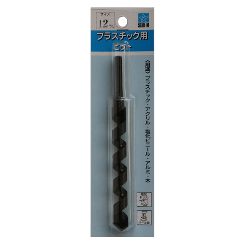 ●用途…プラスチックやアクリルに穴あけに●適合材質…プラスチック、アクリル、塩ビ●サイズ…#12●有効長…100mm●全長…140mm●軸径…7mm●重量…65g●最大回転数…2,500rpm●適合機種…電気ドリルボール盤●シャンク形状…三本溝●材質…普通鋼●刃先は半円錐の特殊形状でプラスチックやアクリル等に簡単にきれいな穴あけができます。●グラインダーを用いて鉄工ドリルと同じ要領で研磨を行うと永く使用可能です。●参考在庫数・商品詳細・サイズ情報はメーカー(参考)URLからもご確認いただけます。 ●最小出荷単位: 1