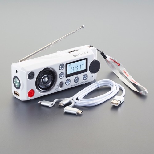 ラジオが勝手にラジオ局を登録してくれるATS機能が付いたラジオライトすべてのスマホが充電出来るケーブル付