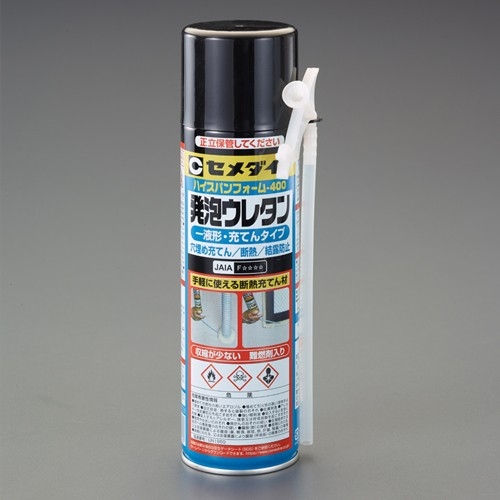 ●メーカー…セメダイン●型番…SE-118●商品名…ハイスパンフォーム400●内容量…410ml●使用温度範囲…-40~80℃●フォーム色…クリーム●発泡量…約12L/1本●消防法…第4類 引火性液体第4石油類 危険等級?●耐熱温度…-40~80℃●エアゾール式1液発泡ウレタンの充填タイプです。約2倍に発泡します。●配管部のすき間・断熱・結露防止に最適です。●逆さ吹き可能。●硬化時間目安:約60分/20mm厚●JAIA F☆☆☆☆●参考在庫数・商品詳細・サイズ情報はメーカー(参考)URLからもご確認いただけます。 ●最小出荷単位: 1