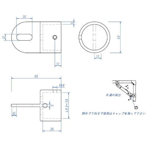 ●適用パイプ…48.6mm●サイズ(mm)(W×D×H)…60×60×95●重量(g)…420●材質…ダクタイル(溶融亜鉛メッキ仕上げ)●止めビス…ステンレスビス(M8-8mm)●締付工具…六角レンチ(4mm) ●パイプ締付時のトルク目安…12.5N(参考値)●パイプと金具接続時の引張強度…578Kg(参考値)●ロープ通し穴…12×30mm●単管パイプφ48.6mm用●屋外専用シリーズ●参考在庫数・商品詳細・サイズ情報はメーカー(参考)URLからもご確認いただけます。 ●最小出荷単位: 1