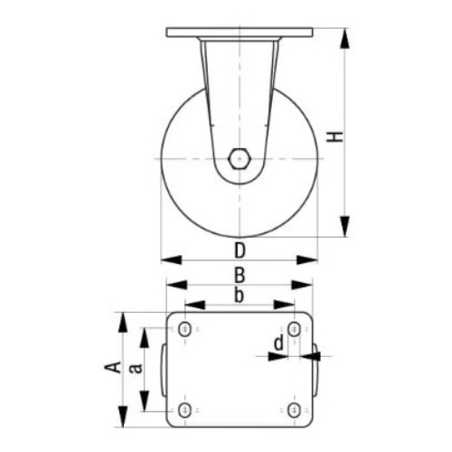 ●仕様…固定車輪●車輪径×幅(mm)…100×36●全高(mm)…157●耐荷重(kg)…800●耐熱温度…-20℃~120℃●重量(g)…4,200●材質…金具:スチール(亜鉛メッキ、黄色不動態化処理、六価クロムフリー)車輪:鋳鉄●タイヤ硬度…180~220HB●工場内設備の重荷重搬送物に最適です。●プレート取付け型●重荷重タイプ●ボールベアリング●グリスニップル付車輪●取付け金具は大きな荷重に耐えられる頑丈な溶接構造●車輪はねずみ鋳鉄(FC材)製、シルバー塗装●A:110mm、B:140mm、D:100mm、H:157mm、a:75-80mm、b:105mm、d:11mm●参考在庫数・商品詳細・サイズ情報はメーカー(参考)URLからもご確認いただけます。 ●最小出荷単位: 1