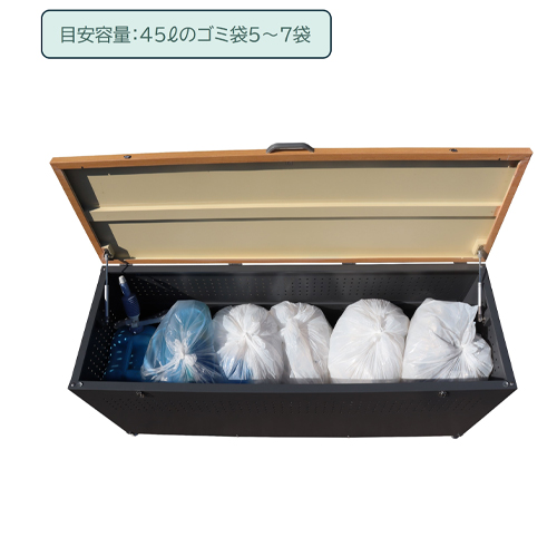 ●メーカー…ダイマツ●型番…DBW-150BK●※注意※…【お客様組立品】●容量…約500L●サイズ(mm)(W×D×H)…1,500×500×665●重量(kg)…26●材質…本体:スチール製表面加工:粉体塗装アジャスター:スチール製ビス:ステンレス●色…蓋:木目本体:グレー●ベランダやガレージ、軒下に。収集日までのゴミ保管に最適です。●南京錠取り付け金具付きなので、防犯対策も万全!●南京錠がなくても、留め具付の為、カラスや猫のいたずら防止にも最適●南京錠取り付け金具付(ツル径5mm以下)(南京錠は付属しておりません)●【エアーダンパー採用で 蓋の開閉が簡単】ゆっくり静かに閉まるので安心安全なゴミ箱です。●【アジャスター足付き】高さを調節出来るアジャスターで、がたつきを解消。●【強度や通気性抜群】スチール・ステンレス製なので、熱に強く強度も抜群!●サイドと底板にパンチング穴があるので、通気性が良く臭いも抑えることが出来ます。●参考在庫数・商品詳細・サイズ情報はメーカー(参考)URLからもご確認いただけます。 ●最小出荷単位: 1
