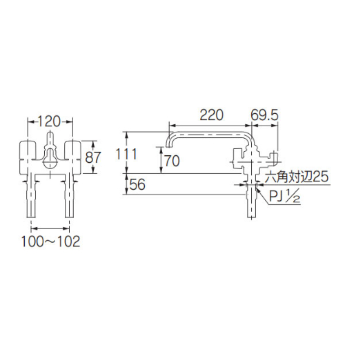 ●メーカー:カクダイ ●型番:152-102 ●水栓取付ねじ:PJ1/2 ●給水管接続部ねじ:G1/2 ●シャワーホース接続部ねじ:G1/2 ●パイプ取付ねじ:W26山20 ●取付芯々:100~102mm ●取付穴径:23~26mm(厚5~35mm) ●ホース長:1.6m ●設置サイズ(幅×奥行×高さ):120×289.5×111mm ●材質:シャワーエルボ:樹脂 ●仕様:一時止水 ●ワンタッチ着脱式ハンドル ●逆止弁付き ●最小出荷単位: 1
