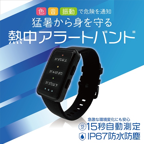 ●サイズ…25×10.5×43(H)mm●材質…ABS、PC、シリコン●重量…11g●防塵・防水性能…IP67●色…ブラック●使用電池…リチウムイオンバッテリー(110mAh)●連続使用時間…3.5~4日●充電時間…約2時間●音量…68dB●測定間隔…毎15秒に1回●充電方法…USB充電(マグネット式)●耐熱温度…~80度●付属品…マグネット式充電ケーブル(ACアダプターなし)、取扱説明書(保証書)●熱中症リスクを色、音、振動で危険を通知します。●起動後は15秒ごとに自動で測定して、結果をお知らせします。●※注意事項※・本製品は医療機器ではございません。・本製品は体調や疾患の判断を担保するものではありません。・本製品には時計機能はございません。 ●最小出荷単位: 1