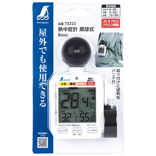 ●メーカー…シンワ測定 ●型番…73223 ●測定項目…WBGT値、温度、湿度 ●測定範囲…WBGT値:0~50度 温度:0~50度 湿度:10~95% ●分解能…WBGT値:0.1度 温度:0.1度 湿度:0.1% ●測定精度…WBGT値:±2度 温度:20~50度:±0.6度 それ以外:±1度 湿度:30~90%:±5% それ以外:±10% ●電源…単4電池×2本(付属) ●サイズ…115×60×35mm ●重量…115g(電池含む) ●最小表示桁…0.1 ●サンプリング…20秒 ●付属品…バンド、ホルダー・バンド用アタッチメント、M3ネジ ●適合規格…JIS B 7922:2023 クラス2準拠 ●アラーム音量…消音 小:60dB 大:70dB (10m離れた場所での音量です。) ●材質…本体:ABS樹脂 液晶カバー:ポリカーボネート樹脂 液晶:ガラス ●注意表示…熱中症注意表示4段階 ●三脚取り付けネジ…1/4インチ ●熱中症の注意レベルを環境に合わせて自動で切り替え、表示と警告ランプ、アラームでお知らせします。 ●読み取りやすい文字高18mmの大型液晶表示を採用しました。 ●屋内と屋外の測定切り替えができる屋内モード/屋外モード切替機能付です。 ●フック穴、三脚取付ネジ穴、バンドで様々な設置方法に対応できます。 ●持ち運びや取り付けに便利なホルダー・バンド用アタッチメントとバンド付です。 ●●注意…付属電池はテスト電池ですので新しい電池をご購入下さい。 ●参考在庫数・商品詳細・サイズ情報はメーカー(参考)URLからもご確認いただけます。 ●最小出荷単位: 1