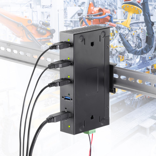 USB-IF認証取得した耐久性に優れた仕様 DINレールへの設置に対応 4ポート