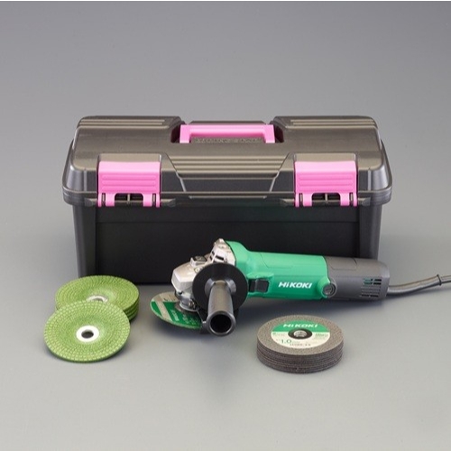 ●メーカー…HiKOKI ●型番…G10B4※ESCOオリジナルセット品 ●用途…スチール・ステンレス・鋳鋼等の切断・研削・研磨作業 ●<セット内容>…●ディスクグラインダー×1 ●切断砥石×10枚(φ105×1mm) ●フレキシブル砥石×5枚(φ100×3mm/#36) ●オフセット砥石×1枚(グラインダー付属品) ●ホイルワッシャB3(ダイヤ用)×1個 ●サイドハンドル×1 ●スパナ×1 ●ケース×1 ●<本体仕様> ●砥石サイズ…φ100×穴径15mm ●スピンドル径…M10×1.5 ●最大出力…1000W ●回転数…9,000rpm ●電源…AC100V・780W・8.0A ●コード長…2.5m ●サイズ…280×56×60(H)mm ●重量…1.8kg ●二重絶縁、ブレーキ付、スライドスイッチ、スピンドルロック付 ●付属品…#36レジノイド砥石×1(本体付属)、スパナ、サイドハンドル ●替カーボンブラシ…標準付属:EA813HH-4、ストップカーボン:EA813HH-14 ●3方向にサイドハンドルが取付け可能。狭所作業にも対応できます。 ●<切断砥石仕様> ●サイズ…φ100×1.0×穴径15mm ●粒度…SG#46 ●最大回転数(rpm)…14,520 ●対応被削材…スチール、ステンレス用 ●砥粒…セラミック ●セラミック砥粒で長寿命 ●<フレキシブル砥石仕様> ●粒度…#36 ●入数…5 ●サイズ…φ100×3×15mm穴 ●対応被削材…一般鋼・ステンレス・アルミ・鋳鉄 ●最大回転数…13,750rpm ●目詰まりや研削、研磨焼けが少ないため研削力が上がり、作業時間が短縮できます。 ●<ケース仕様> ●サイズ…430×180×230(H)mm ●樹脂製 ●中皿付 ●参考在庫数・商品詳細・サイズ情報はメーカー(参考)URLからもご確認いただけます。 ●最小出荷単位: 1