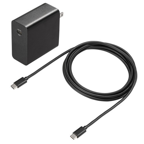 ●メーカー…サンワサプライ ●型番…ACA-PD91BK ●USB出力端子形状…USB Type-C ●定格入力…AC100-240V 50/60Hz ●定格出力…DC5V/3A、DC9V/3A、DC12V/3A、DC15V/3A、DC20V/3.25A(最大65W) PPS/DC3.3V~21V/3.25A(最大65W) ●プラグ形状…2P ●ポート数…USB Type-Cポート×1 ●合計出力…65W(最大) ●使用温度範囲…5~35度 ●サイズ…W60×D29×H60mm ●重量…約136g ●セット内容…本体、USB Type-Cケーブル(USB PD 5A対応)、取扱説明書・保証書 ●対応機種…USB Type-Cポートを搭載しUSB Power Delivery 65Wの規格内での充電に対応したノートパソコン、タブレット、スマートフォン すべての機種への充電を保証するものではありません。ご使用の機種によっては充電できない場合があります。 ●最大65WまでのUSB Power Delivery規格による充電に対応したUSB Type-Cケーブル付きのACアダプタです。 ●USB Type-Cポートからの充電に対応したノートパソコンからタブレット、スマートフォンまで1台で充電可能です。 ●機器への充電に使える5A対応のUSB Type-Cケーブルを付属しているので、別途充電ケーブルを用意する必要がありません。 ●付属のケーブルは長さ2mで、デスク下のコンセントにもゆったり使えます。 ●USB PD規格による充電は機器を接続するだけで接続機器の仕様に合わせて出力電圧を自動で切替えるため、機器に合わせた最適な出力で充電します。 ●USB PD-PPS規格に対応し、PPS規格対応機種の充電においては充電中の電圧と電流を細かく調整し最適化することで、発熱を抑えながら効率的に充電することができます。 ●電気用品安全法(PSE)技術基準適合品です。 ●参考在庫数・商品詳細・サイズ情報はメーカー(参考)URLからもご確認いただけます。 ●最小出荷単位: 1