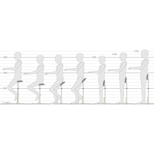 ●サイズ(mm)…370(W)×150(D)×650~930(H) ●カラー…ブラック/ブラック ●脚幅…300mm ●重量…4.3kg ●材質…PVC、スチールパイプ ●耐荷重…100kg ●座面調整高さ(mm)…チェア使用時:650~850(5段階) スタンディング時:730~930(5段階) ●座面角度調節…0°~78°(14段階) ●適合身長…150~180cm(目安) ●日本製 ●カウンター越しでの接客、レジ打ち、工場等、様々な作業場の高い位置でのワークに使用することで疲労を軽減し、効率的な作業をサポート。 ●着座時は一般的な椅子より、高さがあるため高い位置での作業を座って行えます。 また、着座時でも、顔の位置が低くなり過ぎないため、目線が起立時とそれほど変わらずに、接客などもスムーズな対応が可能になります。 ●高さ調節が自在で、シート位置は65cmから85cmまで、約5cm刻みでぴったりフィット。 ●作業に合わせて14段階ギア(1段階6°)角度調節ができて背もたれから座面に使用できます。 ●フレーム付属のピンで簡単操作、高さ調整もストレスフリー。 ●耐荷重100kgの頑強な設計は、立ち作業を効率的かつ快適にサポートします。 ●使い手の身体に寄り添う、頼れる補助椅子。 ●立ち作業をもっとラクに、もっとスムーズに。 ●コンパクトで軽量なため、邪魔にならず、移動も容易。 ●参考在庫数・商品詳細・サイズ情報はメーカー(参考)URLからもご確認いただけます。 ●最小出荷単位: 1