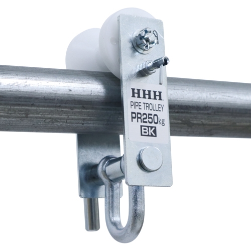 ●メーカー…スリーエッチ ●型番…PR250BK ●使用荷重(t)…0.25 ●適用パイプ径(mm)…35~60 ●重量(kg)…0.82 ●材質…本体:スチール ローラー:ナイロン ●全長…180mm ●取付方法…折れピンを抜き取りシャックルを外してから、再びパイプ・シャックルなどと一緒に差し込んでください。 ●車輪ロック機構付 ●単管に取り付けて荷物を搬送させることができます。 ●ストッパー付きですので、勝手に転がらず便利です。 ●樹脂製車輪なので静かです。 ●軽量ですので一人で取り付けることができます。 ●小型・安価ですので工場の生産ラインや倉庫の省力化などにも最適です。 ●※人間の搬送には使用できません。 ●※本機は屋内仕様です。雨ざらし、野ざらしでの使用や保管は避けてください。 ●※段差や継ぎ目などの走行がある場合は十分に安全を確認の上、ご使用ください。 ●※本機2台以上で一つの荷を搬送する(共吊り)場合も荷重は合計250kgになります。 ●※ロック機構は車輪を動かなくする機構です。パイプの傾きや振動などで動く場合があります。確実に止めたい場合は前後に別の単管クランプを取り付けるか、ロープ等で固定してください。 ●参考在庫数・商品詳細・サイズ情報はメーカー(参考)URLからもご確認いただけます。 ●最小出荷単位: 1