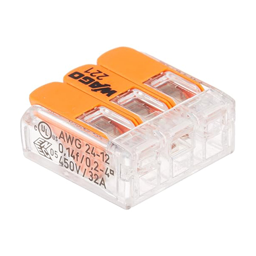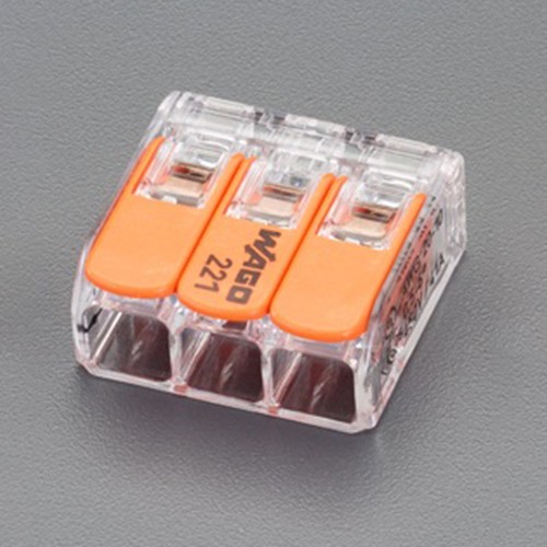 ●メーカー…WAGO(ワゴ) ●型番…WFR-3BP(221-413) ●極数…3極 ●定格…電気用品適合:20A300V JIS適合/IEC適合:32A450V UL適合:20600V ●適合電線…単線:φ0.5~2.0mm IV7本撚線:0.2~3.5mm2 可とうより線:0.14~4.0mm2 ●電線むき出し長さ…10~12mm ●最大被覆外径…φ4.0mm ●サイズ…18.6×18.7×8.3(H)mm ●材質…透明ハウジング : 耐熱性ポリカーボネート(UL94 V-2) 導電部 : 電気銅、スズメッキ ケージクランプ スプリング : ステンレス鋼 操作レバー : 耐熱性 PBT(ガラス入り) ●適用電線規格…JIS C 2814-2-2 ●連続使用最高温度…105度 ●入数…8個 ●用途…屋内配線用途の他、一般電気工作物などの配線に ●単線、IV7本より線、可とうより線の混在使用可能です。 ●ソフトなレバー操作でワンタッチ結線できます。 ●振動に強いスプリング接続で、結線がゆるまないです。 ●透明ハウジングで安心・安全です。 ●PSE適合製品 ●内線規程記載工法/国土交通省電気設備工事共通仕様書記載工法 ●※差し込みが不十分だと導通不良や発熱の恐れがあります。 ●参考在庫数・商品詳細・サイズ情報はメーカー(参考)URLからもご確認いただけます。 ●最小出荷単位: 1
