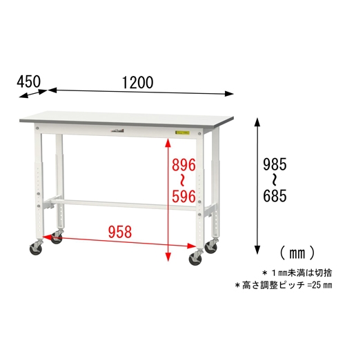 1200x450x685-985ワークテーブル(車輪付)