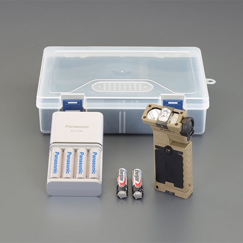 ●メーカー…ストリームライト(STREAM LIGHT) ●型番…※ESCOオリジナルセット品 ●シリーズ…サイドワインダー(SIDEWAINDER) ●商品名…SIDEWINDER RESCUE ●〈セット内容〉…レスキューシグナルライト、充電器(ニッケル水素電池×4本付セット)、収納ケース ●使用電池…充電池セット 単3×2本(付属)または ニッケル水素電池×2本(付属) ●照射パターン…ツインビーム(前方) ●明るさ…白:55ルーメン 青:1.8ルーメン 緑:4.5ルーメン ●連続点灯時間…白:5.5時間 青・緑:16時間 ●照射距離…69m ●光源…白色・青色・緑色・赤外線LED球(各1個) ●サイズ…本体:59×27×118(H)mm 収納ケース:234×168×62(H)mm ●重量…142g(電池含) ●材質…本体:耐衝撃性・耐候性ナイロン レンズ:ポリカーボネート ●防水性能…IPX7 ●耐衝撃性能…3m ●ヘッド角度調整可能(185°) ●スライド式の拡散レンズで集光・散光を切替可能 ●遭難時や救急活動時の救命灯に ●4段階調光+点滅機能付 ●赤外線は肉眼では見えません。ナイトスコープ等を併用してください。 ●空対地の視認性が高く、遭難時はライトをONにして本体を頭上に掲げて円形パターンを描くことで、上空からの捜索救急隊に発見される可能性を高めることができます。 ●米国国防総省制定のMIL規格(MIL-STD-810F, Method 512.4)に適合 ●照射角固定・ツインビーム(前方)タイプ 照射部分に異なる性質のLEDを2種類搭載しており、ノーマル→ワイド→ノーマル&ワイド(同時照射)等の切替が可能なモデル ●マジックテープ(別売)でヘルメットなどに装着できます。 ●収納ケース付で、保管や持ち運びも便利です。 ●充電器と繰り返し使えるニッケル水素電池付 ●参考在庫数・商品詳細・サイズ情報はメーカー(参考)URLからもご確認いただけます。 ●最小出荷単位: 1