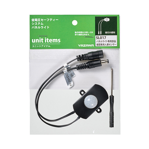 ●メーカー…ヤザワコーポレーション ●型番…SL017 ●サイズ…120×20×50mm ●重量…25g ●防滴仕様 ●パネルライト(EA864CB-281)専用の夜間専用人感センサーです。 ●動作時間は20~320秒で調節できます。 ●明暗センサーが内臓されていて、夜間のみ人、動物などの熱源を感知して反応します。 ●参考在庫数・商品詳細・サイズ情報はメーカー(参考)URLからもご確認いただけます。 ●最小出荷単位: 1