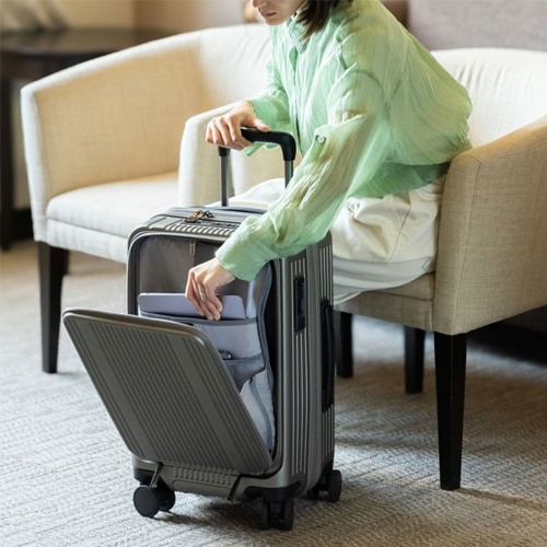●サイズW×D×H(mm)…330×240×500 ●総外周…350(W)×240(D)×550(H)mm (キャスター・持ち手含む) ●容量(L)…37 ●重量(kg)…3.4 ●色…アンバーブラウン ●材質…ポリカーボネート100% ●キャスター…自在×4 ●機内持込サイズ対応(エキスパンダブル時は非対応) ●容量拡張機能を搭載し、静粛性の高い大径キャスターがストレスフリーな移動を実現。 ●PCや書類を素早く取り出せる使い勝手の良いフロントポケット、プライバシーに配慮した両面仕切りなど、優れた収納力で通勤から旅行まであらゆる移動を快適にサポートします。 ●軽量かつ頑丈なポリカーボネート100%素材と傷が目立ちにくく強度を確保する縦リブデザインで、優れた強度と耐久性を兼ね備え、デイリーユースからビジネス・トラベルシーンにも安心して対応します。 ●フロントポケット前面側の一面に立体的なマチ幅を保持したメッシュファスナーポケットを配置しました。 ●メインルームの容量を圧迫しないフラットで使いやすいフロントポケット メインルーム側の前面には視認性の良いメッシュオープンポケット×2をレイアウト ●フロントポケットにはモバイル機器クッションポケット(~15インチPC対応可能)を配置 ※機器の対応サイズ:機器によって入らない可能性がございます。 ●フロントポケットのササマチ部にファスナーを付属し、ファスナーを全て開けるとフルオープンが可能。内容物の出し入れがしやすい仕様です。 ●フロントポケット側から簡単にメインルームへアクセスができるので、ちょっとした荷物の出し入れにも周囲のスペースを気にする事なく楽に行えます。 ●フロントポケットとメインルームの仕切りは三方がファスナーで、ファスナーを全開するとフルオープンが可能です。 ※ササマチはメインルーム仕切り部ファスナー内側に付属。ササマチファスナーを閉めたままフルオープンが可能です。 ●フロントポケットとメインルームを同時に施錠可能なツインロックで便利に使用できます。 ●トラベルセントリーロックはダイヤルロック式を採用しています。 この錠前には鍵は付属しておりません。錠前にある鍵穴は空港の検査官が使用するものでお客様がご利用いただくものではありません。 ※番号の初期設定は0-0-0になっています。 ●本体側面に設置されたスライドスイッチで簡単に前面側の2輪のロック、プッシュボタンでアンロックができます。信号待ちや電車・バス乗車時に不用意な動き出しを制限することができ、快適にご利用いただけます。 ※キャスターのスライドスイッチが「LOCK」の位置でも地面の傾斜状態や乗り物の揺れなどで動く場合がありますので不安定な場所では手を添えるなど取扱にご注意ください。 ●参考在庫数・商品詳細・サイズ情報はメーカー(参考)URLからもご確認いただけます。 ●最小出荷単位: 1