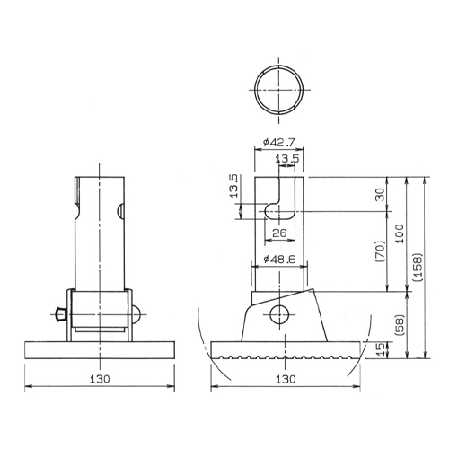 ●適用パイプ径…φ48.6mm ●高さ…100mm ●ベースサイズ…130×130mm ●耐荷重…400kg ●重量…1.2kg ●材質…鉄 ●傾斜面でも使用可能なチルトタイプ ●ベースは設置面の保護と滑り止めのためゴムでしっかりコーティングされています。 ●参考在庫数・商品詳細・サイズ情報はメーカー(参考)URLからもご確認いただけます。 ●最小出荷単位: 1