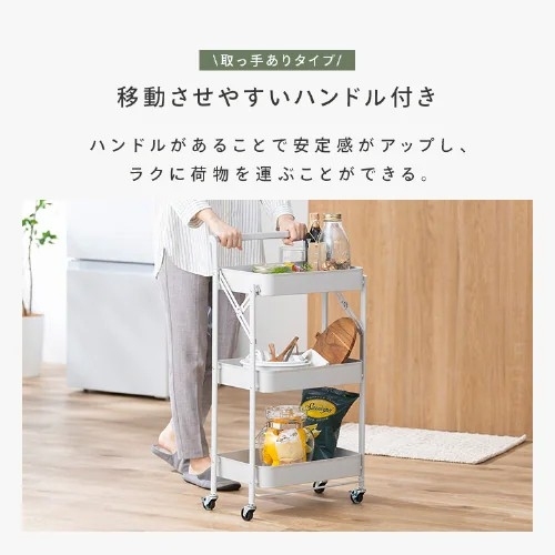 ●メーカー…アイリスオーヤマ(IRIS OHYAMA) ●型番…KKSW-3T ●※注意※…【お客様組立品】 ●段数…3 ●サイズ(W×D×H)mm…433×276×836 (キャスター含) ●重量(kg)…3.3 ●耐荷重(kg)…全体:21 各段:7 ●かご内寸…378(W)×266(D)×63(H)mm ●材質…本体:スチール キャスター:ポリプロピレン ●キャスター径…約φ38mm ●車輪…自在×4(内2個ストッパー付) ●カラー…ブラック ●折りたたみ時サイズ…440(W)×80(D)×950(H)mm ●収納の目安…かご1段あたり:ペットボトル500ml 12本 ●かごの間隔…285mm ●工具不要で簡単に組み立て可能 ●組み立ては本体を開いてロックパーツをはめ、キャスターを取り付けるだけの3STEPです。 ●さまざまなシーンで使えるキャスター付きスチールワゴン ●2輪にストッパーが付いているから、固定したいときも安心です。 ●ワゴンの開閉を防ぐロック機能付きでワゴンの転倒や収納した物の落下を防ぎます。 ●頑丈なスチール製で、表面はサビに強い粉体塗装。キズやサビに強くお手入れもしやすいです。 ●底面は通気性がよい格子状で、湿気やほこりが溜まりにくい。 ●折りたためるから、使わないときはコンパクトに収納可能 ●参考在庫数・商品詳細・サイズ情報はメーカー(参考)URLからもご確認いただけます。 ●最小出荷単位: 1