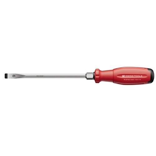●メーカー…PB SWISS TOOLS ●型番…PB 38100.6-180 S ●刃幅×刃厚…(-)10×1.6mm ●軸長…180mm ●軸径…8mm ●全長…303mm ●適合ねじ…M6 ●六角部レンチサイズ…13mm ●重量…187g ●手元六角付 スパナ・レンチの併用で、トルクをかけたねじ締めや緩め作業が可能です。 ●平行な刃先がカムアウトを防ぎ、高トルクを伝えます。 ●バネ鋼ベースの特殊合金で弾性に優れ、高い硬度を保ちます。 ●最適化されたハンドル形状により、最大限のパワー伝達と圧倒的な高トルクを実現 ●油や水で濡れた手で握っても滑りにくく、安全で正確に作業ができます。 ●化学的耐性や機械的強度があり、過酷な現場での使用に耐えます。 ●グリップの端(お尻の部分)に、ドライバーの先端形状とサイズを表示 ねじの形状・サイズを素早く識別可能です。 ●ブレード部のシリアル番号で原料段階の製造過程まで遡ることができます。 ●【SwissGrip Evoの特長】 ・従来の丸形グリップから、わずかに三角形に近い(トライアングル形状)に改良 ・グリップ形状により、握ったときに手のひらにしっかりフィットします。 ネジを回すためのトルク伝達率が従来品より約25%も向上しています。 少ない力で、より確実にネジを締める・緩めることができます。 ●【3層構造(3Kコンポジット)のハイテク素材】 内側(コア):力をしっかり受け止める硬い素材(リサイクル素材) 中間:内側のコアと外側の層を結合する素材 外側(表面):手に吸い付くような滑りにくい柔らかい素材 ●参考在庫数・商品詳細・サイズ情報はメーカー(参考)URLからもご確認いただけます。 ●最小出荷単位: 1