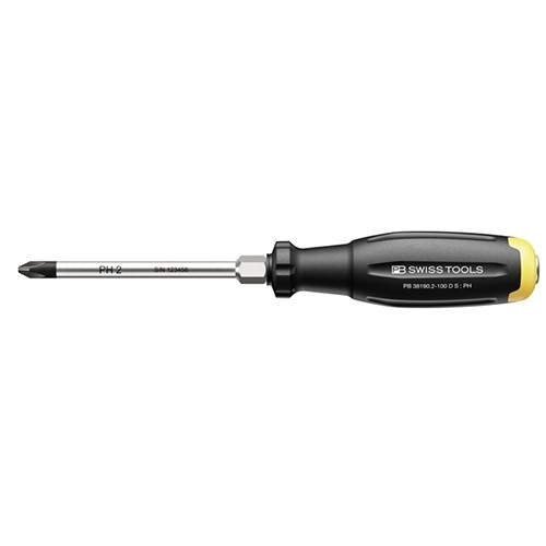 ●メーカー…PB SWISS TOOLS ●型番…PB 38190.2-100 D S ●用途…自動車工場や修理工場、各種メンテナンスの現場に ●先端×軸径…#2×7mm ●軸長…100mm ●全長…209mm ●適合ねじ…M3~5 ●手元六角部…10mm ●重量…138g ●貫通柄の為、ハンマーで叩けます。 ●手元六角付 六角ボルスター付のためスパナ・レンチの併用でトルクをかけたねじ締めや緩め作業が可能 ●バネ鋼ベースの特殊合金で弾性に優れ、高い硬度を保ちます。 ●最適化されたハンドル形状により、最大限のパワー伝達と圧倒的な高トルクを実現 ●油や水で濡れた手で握っても滑りにくく、安全で正確に作業ができます。 ●化学的耐性や機械的強度があり、過酷な現場での使用に耐えます。 ●グリップの端(お尻の部分)に、ドライバーの先端形状とサイズを表示 ねじの形状・サイズを素早く識別可能です。 ●ブレード部のシリアル番号で原料段階の製造過程まで遡ることができます。 ●【SwissGrip Evoの特長】 ・従来の丸形グリップから、わずかに三角形に近い(トライアングル形状)に改良 ・グリップ形状により、握ったときに手のひらにしっかりフィットします。 ネジを回すためのトルク伝達率が従来品より約25%も向上しています。 少ない力で、より確実にネジを締める・緩めることができます。 ●【3層構造(3Kコンポジット)のハイテク素材】 内側(コア):力をしっかり受け止める硬い素材(リサイクル素材) 中間:内側のコアと外側の層を結合する素材 外側(表面):手に吸い付くような滑りにくい柔らかい素材 ●参考在庫数・商品詳細・サイズ情報はメーカー(参考)URLからもご確認いただけます。 ●最小出荷単位: 1