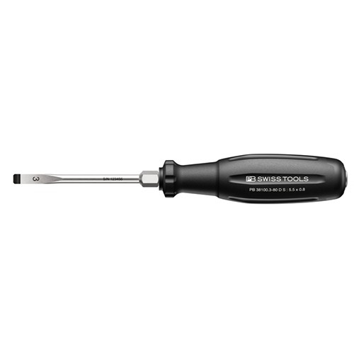●メーカー…PB SWISS TOOLS ●型番…PB 38100.3-80 D S ●用途…自動車工場や修理工場、各種メンテナンスの現場に ●刃幅×刃厚…5.5×0.8mm ●軸長…80mm ●軸径…5mm ●全長…185mm ●適合ねじ…M3 ●手元六角部…8mm ●重量…82g ●貫通柄の為、ハンマーで叩けます。 ●手元六角付 六角ボルスター付のためスパナ・レンチの併用でトルクをかけたねじ締めや緩め作業が可能 ●バネ鋼ベースの特殊合金で弾性に優れ、高い硬度を保ちます。 ●最適化されたハンドル形状により、最大限のパワー伝達と圧倒的な高トルクを実現 ●油や水で濡れた手で握っても滑りにくく、安全で正確に作業ができます。 ●化学的耐性や機械的強度があり、過酷な現場での使用に耐えます。 ●グリップの端(お尻の部分)に、ドライバーの先端形状とサイズを表示 ねじの形状・サイズを素早く識別可能です。 ●ブレード部のシリアル番号で原料段階の製造過程まで遡ることができます。 ●【SwissGrip Evoの特長】 ・従来の丸形グリップから、わずかに三角形に近い(トライアングル形状)に改良 ・グリップ形状により、握ったときに手のひらにしっかりフィットします。 ネジを回すためのトルク伝達率が従来品より約25%も向上しています。 少ない力で、より確実にネジを締める・緩めることができます。 ●【3層構造(3Kコンポジット)のハイテク素材】 内側(コア):力をしっかり受け止める硬い素材(リサイクル素材) 中間:内側のコアと外側の層を結合する素材 外側(表面):手に吸い付くような滑りにくい柔らかい素材 ●参考在庫数・商品詳細・サイズ情報はメーカー(参考)URLからもご確認いただけます。 ●最小出荷単位: 1