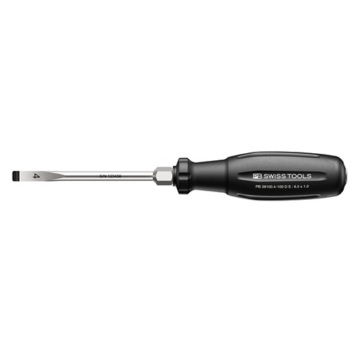 ●メーカー…PB SWISS TOOLS ●型番…PB 38100.4-100 D S ●用途…自動車工場や修理工場、各種メンテナンスの現場に ●刃幅×刃厚…6.5×1.0mm ●軸長…100mm ●軸径…6mm ●全長…210mm ●適合ねじ…M3.5 ●手元六角部…10mm ●重量…112g ●貫通柄の為、ハンマーで叩けます。 ●手元六角付 六角ボルスター付のためスパナ・レンチの併用でトルクをかけたねじ締めや緩め作業が可能 ●バネ鋼ベースの特殊合金で弾性に優れ、高い硬度を保ちます。 ●最適化されたハンドル形状により、最大限のパワー伝達と圧倒的な高トルクを実現 ●油や水で濡れた手で握っても滑りにくく、安全で正確に作業ができます。 ●化学的耐性や機械的強度があり、過酷な現場での使用に耐えます。 ●グリップの端(お尻の部分)に、ドライバーの先端形状とサイズを表示 ねじの形状・サイズを素早く識別可能です。 ●ブレード部のシリアル番号で原料段階の製造過程まで遡ることができます。 ●【SwissGrip Evoの特長】 ・従来の丸形グリップから、わずかに三角形に近い(トライアングル形状)に改良 ・グリップ形状により、握ったときに手のひらにしっかりフィットします。 ネジを回すためのトルク伝達率が従来品より約25%も向上しています。 少ない力で、より確実にネジを締める・緩めることができます。 ●【3層構造(3Kコンポジット)のハイテク素材】 内側(コア):力をしっかり受け止める硬い素材(リサイクル素材) 中間:内側のコアと外側の層を結合する素材 外側(表面):手に吸い付くような滑りにくい柔らかい素材 ●スパナが掛けられます ●厳しい条件である自動車工場や修理工場、各種メンテナンスの現場でご使用いただけます。 ●参考在庫数・商品詳細・サイズ情報はメーカー(参考)URLからもご確認いただけます。 ●最小出荷単位: 1