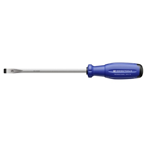 ●メーカー…PB SWISS TOOLS ●型番…PB 38100.6-180 BL ●刃幅×刃厚…10×1.6mm ●軸径…8mm ●軸長…180mm ●色…青 ●全長…303mm ●適合ねじ…M6 ●総重量…175g ●平行な刃先がカムアウトを防ぎ、高トルクを伝えます。 ●バネ鋼ベースの特殊合金で弾性に優れ、高い硬度を保ちます。 ●最適化されたハンドル形状により、最大限のパワー伝達と圧倒的な高トルクを実現 ●油や水で濡れた手で握っても滑りにくく、安全で正確に作業ができます。 ●化学的耐性や機械的強度があり、過酷な現場での使用に耐えます。 ●グリップの端(お尻の部分)に、ドライバーの先端形状とサイズを表示 ねじの形状・サイズを素早く識別可能です。 ●ブレード部のシリアル番号で原料段階の製造過程まで遡ることができます。 ●【SwissGrip Evoの特長】 ・従来の丸形グリップから、わずかに三角形に近い(トライアングル形状)に改良 ・グリップ形状により、握ったときに手のひらにしっかりフィットします。 ネジを回すためのトルク伝達率が従来品より約25%も向上しています。 少ない力で、より確実にネジを締める・緩めることができます。 ●【3層構造(3Kコンポジット)のハイテク素材】 内側(コア):力をしっかり受け止める硬い素材(リサイクル素材) 中間:内側のコアと外側の層を結合する素材 外側(表面):手に吸い付くような滑りにくい柔らかい素材 ●参考在庫数・商品詳細・サイズ情報はメーカー(参考)URLからもご確認いただけます。 ●最小出荷単位: 1