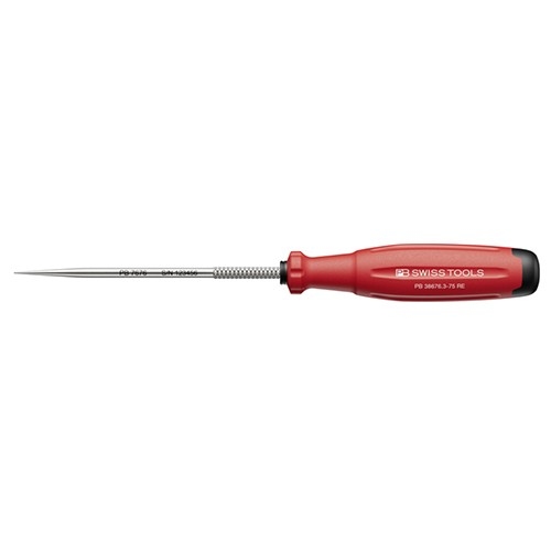 ●メーカー…PB SWISS TOOLS ●型番…PB38676.3-75RE ●用途…Oリングの取り外しや各種こじり作業に ●仕様…ストレートタイプ ●全長…153mm ●軸径…3mm ●軸長…75mm ●材質…特殊スチール ●重量…18.5g ●ストレート先端で、Oリング外し、配線の引き寄せ、狭所のピック作業に最適 ●精密加工の先端採用、硬度、耐摩耗性に優れています。 ●人間工学に基づいたデザインで、快適で疲れにくい作業を実現しました。 ●油や水で濡れた手で握っても滑りにくく、安全で正確に作業ができます。 ●化学的耐性や機械的強度があり、過酷な現場での使用に耐えます。 ●グリップエンド部の先端形状アイコン表示で、工具の取り違えも防止します。 ●ブレード部のシリアル番号で原料段階の製造過程まで遡ることができます。 ●【SwissGrip Evoの特長】 ・従来の丸形グリップから、わずかに三角形に近い(トライアングル形状)に改良 ・グリップ形状により、握ったときに手のひらにしっかりフィットします。 ネジを回すためのトルク伝達率が従来品より約25%も向上しています。 少ない力で、より確実にネジを締める・緩めることができます。 ●【3層構造(3Kコンポジット)のハイテク素材】 内側(コア):力をしっかり受け止める硬い素材(リサイクル素材) 中間:内側のコアと外側の層を結合する素材 外側(表面):手に吸い付くような滑りにくい柔らかい素材 ●参考在庫数・商品詳細・サイズ情報はメーカー(参考)URLからもご確認いただけます。 ●最小出荷単位: 1
