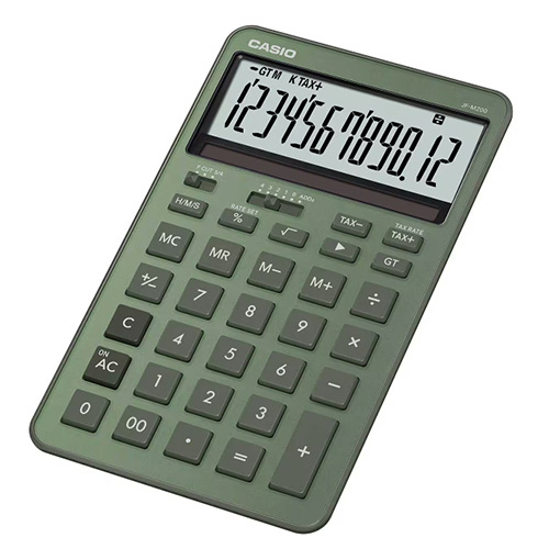 ●メーカー…カシオ(CASIO) ●型番…JF-M200-GN-N ●桁数…12桁 ●サイズ…109(W)×182(D)×20.4(H)mm ●電源…太陽電池+CR2025×1個 ●電池寿命…約7年(1日1時間使用時) ●重量…193g ●液晶ディスプレイ…計算状態表示、3桁位取り表示 ●計算機能…四則計算、四則定数計算、マルチパーセント計算、平方根(ルート)、概数計算 ●キーの機能…早打ち機能(2キーロールオーバー)、ツーゼロ(00)、桁下げ(バックスペース)、サインチェンジ(符号切替) ●キーの特徴…プラスチックキー、フラットキー ●メモリー…メモリー数 2、独立メモリー(M+、M-、MR、MCキー方式)、総合計(グランドトータル計算) ●カラー…グリーン ●【時間計算機能】 時間の四則計算、メモリー計算、パーセント計算が出来ます。『勤務時間計算』『時給計算』等に便利です。 ●【税計算機能】 消費税の税込・税抜計算が行えます。税率も自由に設定でき、税金額も表示します。 ●【切捨・四捨五入機能】 小数の端数処理の選択が出来ます。 ●【早打ち機能】 次のキーを入力する際、前のキーを離す途中から押しはじめても入力できます。 ●一定時間操作がないと自動的に電源が切れるオートパワーオフ機能搭載 ●薄型フォルムで優れた操作性と視認性のジャストタイプ電卓 ●優雅に美しく、洗練されたスマートなデザイン ●直線的なラインで構成されたフォルムが、知性を感じる引き締まった印象を演出しています。 ●背面の角を、層を重ねたような形状に。持ちやすさと造形の美しさを両立しました。 ●液晶と一体化するようにソーラーパネルを設置。スマートな前面デザインに仕上げています。 ●キーを囲うリブをなくした構造を採用。ミニマルで凛とした操作面を実現しました。 ●落ち着いた印象のモダンなフォントを採用。視認性とデザイン性を兼ね備えています。 ●デスクに置いた際に斜めからでもクリアに読めるよう、液晶に角度をつけています。 ●参考在庫数・商品詳細・サイズ情報はメーカー(参考)URLからもご確認いただけます。 ●最小出荷単位: 1