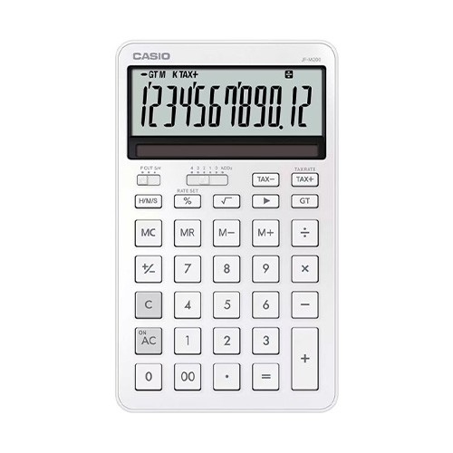 ●メーカー…カシオ(CASIO) ●型番…JF-M200-WE-N ●桁数…12桁 ●サイズ…109(W)×182(D)×20.4(H)mm ●電源…太陽電池+CR2025×1個 ●電池寿命…約7年(1日1時間使用時) ●重量…193g ●液晶ディスプレイ…計算状態表示、3桁位取り表示 ●計算機能…四則計算、四則定数計算、マルチパーセント計算、平方根(ルート)、概数計算 ●キーの機能…早打ち機能(2キーロールオーバー)、ツーゼロ(00)、桁下げ(バックスペース)、サインチェンジ(符号切替) ●キーの特徴…プラスチックキー、フラットキー ●メモリー…メモリー数 2、独立メモリー(M+、M-、MR、MCキー方式)、総合計(グランドトータル計算) ●カラー…ホワイト ●【時間計算機能】 時間の四則計算、メモリー計算、パーセント計算が出来ます。『勤務時間計算』『時給計算』等に便利です。 ●【税計算機能】 消費税の税込・税抜計算が行えます。税率も自由に設定でき、税金額も表示します。 ●【切捨・四捨五入機能】 小数の端数処理の選択が出来ます。 ●【早打ち機能】 次のキーを入力する際、前のキーを離す途中から押しはじめても入力できます。 ●一定時間操作がないと自動的に電源が切れるオートパワーオフ機能搭載 ●薄型フォルムで優れた操作性と視認性のジャストタイプ電卓 ●優雅に美しく、洗練されたスマートなデザイン ●直線的なラインで構成されたフォルムが、知性を感じる引き締まった印象を演出しています。 ●背面の角を、層を重ねたような形状に。持ちやすさと造形の美しさを両立しました。 ●液晶と一体化するようにソーラーパネルを設置。スマートな前面デザインに仕上げています。 ●キーを囲うリブをなくした構造を採用。ミニマルで凛とした操作面を実現しました。 ●落ち着いた印象のモダンなフォントを採用。視認性とデザイン性を兼ね備えています。 ●デスクに置いた際に斜めからでもクリアに読めるよう、液晶に角度をつけています。 ●参考在庫数・商品詳細・サイズ情報はメーカー(参考)URLからもご確認いただけます。 ●最小出荷単位: 1