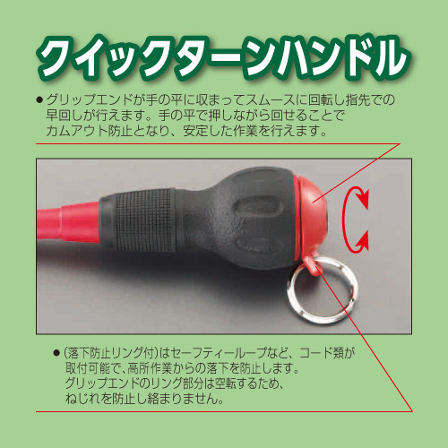 ●メーカー…ESCOオリジナル ●先端…(+)#2 ●軸長…100mm ●生産国…日本 ●グリップエンドが手の平に収まりスムーズに回転し指先での早回しができる「クイックターンハンドル」を採用 ●手の平で押しつけながら回すことでカムアウトを防止し安定した作業を実現 ●1000V絶縁 ●落下防止リング付 ●参考在庫数・商品詳細・サイズ情報はメーカー(参考)URLからもご確認いただけます。 ●最小出荷単位: 1