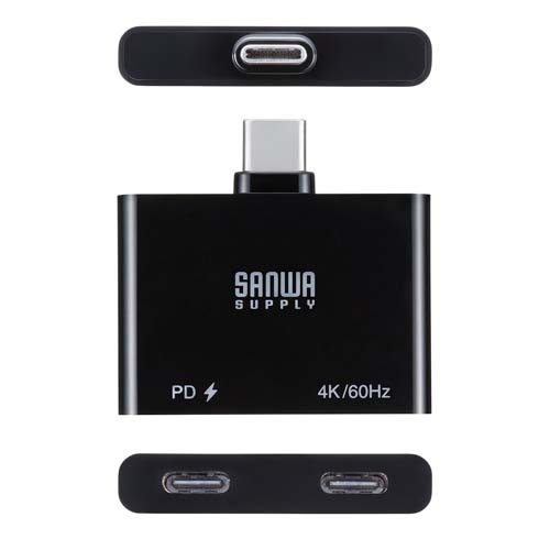 ●メーカー…サンワサプライ ●型番…AD-ALCCPD01 ●インターフェース…USB 5Gbps(USB3.2 Gen1/3.1 Gen1/3.0)準拠 ●コネクタ形状…アップストリーム/USB 5Gbps Type-Cコネクタ オス ダウンストリーム/USB Type-Cコネクタ メス×1(映像出力+USB2.0 480Mbps対応) USB Type-Cコネクタ メス×1(PD充電のみ/PD100W対応) ●電源…セルフパワー・バスパワー両対応 ※パソコン本体に付属のPD対応ACアダプタなどを使用しセルフパワーとしても使用できます。 ※45W以下のACアダプタを使用する場合はパソコンが充電モードに入らない場合があります。 ●供給電流…USB Type-Cコネクタ メス(映像出力+USB2.0側)/最大1500mA USB Type-Cコネクタ メス(PDアダプタ接続側)/受電のみ。給電機能なし ※パソコン側からの供給電流に依存します。 ●最大対応解像度…4K/60Hz ●対応解像度…最大表示解像度 4K/60Hz ※4K/60Hzでの出力はパソコン側のType-CポートがDP1.4に対応している必要があります。 ※パソコン、プロジェクターやディスプレイ、接続ケーブルなどが同じ解像度に対応している必要があります。 ●HDR対応…対応 ●HDCP…HDCP1.4、HDCP2.2、HDCP2.3 ●HDMI規格…HDMI2.0 ●PD対応…対応 ●USB PD最大入力(電源)…100W ●USB PD最大出力(PC接続端子)…92W ●サイズ…40(W)×37.7(D)×7.8(H)mm ●重量…約8g ●コンパクトな直差し型 ●USB-Cポートを映像と充電に分岐。VRゴーグルやモバイルモニターに最適なUSB Type-C拡張アダプタ ●Type-C搭載(映像出力に対応したType-Cポートのみ)のノートパソコン・スマートフォン・タブレットからのType-C映像を、PD充電をしながら出力できます。 ●モバイルモニターでの動画視聴、窓口やPOSレジ、ARグラスなど、長時間の使用に便利 ●Type-C接続のディスプレイやモバイルモニターに対応 ●ドライバのインストールなしで簡単にマルチディスプレイ環境(ミラーモード/拡張モード)を実現 ●参考在庫数・商品詳細・サイズ情報はメーカー(参考)URLからもご確認いただけます。 ●最小出荷単位: 1
