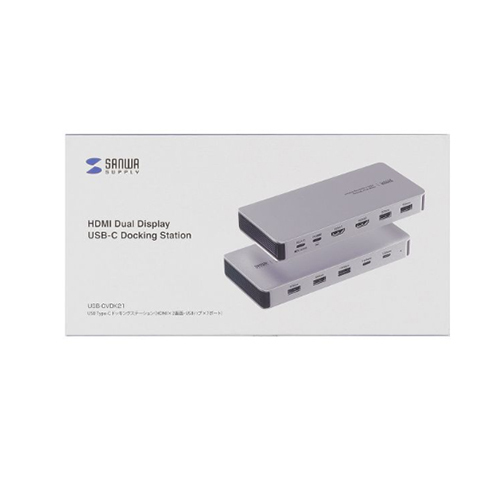 ●メーカー…サンワサプライ ●型番…USB-CVDK21 ●〈PC接続端子〉 ●コネクタ形状(PC接続端子)…USB Type-C ●対応規格…USB 10Gbps(USB3.2 Gen2/USB3.1 Gen2)準拠 ●USB PD最大出力…85W ●ケーブル長…100cm ●ケーブルタイプ…ケーブル着脱 ●〈USBポート〉 ●ポート数…7ポート ●最大データ転送速度…10Gbps(理論値) ●USBポート…Type-Cメス/USB 10Gbps 2ポート USB Aメス/USB 10Gbps 1ポート USB Aメス/USB 5Gbps 4ポート ●供給電流…USB 10Gbps Type-C(パソコン接続用)/USB PD対応(最大85W) USB Type-Cコネクタ/1ポートあたり最大1500mA USB Aコネクタ(10Gbps/5Gbps)/1ポートあたり最大900mA USB Aコネクタ(10Gbps/5Gbps)/合計最大3000mAまで ●〈電源〉 ●電源供給方式…バスパワー/セルフパワー(電源接続時) ●本体消費電力…15W ●USB PD入力ポート…あり ●USB PD最大入力…100W ●〈映像出力ポート〉 ●対応出力ディスプレイ数…2台 ●最大対応解像度…4K/60Hz ●最大対応解像度/リフレッシュレート…ディスプレイ1台接続時/3840×2160(4K/60Hz) ディスプレイ2台接続時/3840×2160(4K/30Hz)×2画面 ※記載の対応解像度はご使用のパソコンがDisplayPort Alt Mode(DP1.4以上)に対応している必要があります。 ●HDMI…2ポート ●〈共通仕様〉 ●サイズ…155(W)×70(D)×20(H)mm ●動作温度…5度~40度 ●動作湿度…10%~85% ※結露なきこと ●重量…約200g ●全ポート数…10in1 ●対応機種…10Gbps以上の転送速度に対応したUSB Type-Cコネクタを標準装備しており、DisplayPort Alt mode(DP1.4以上)に対応しているWindows搭載(DOS/V)パソコン、Apple Macシリーズ ●対応OS…Windows 11・10 macOS(Sequoia)15、macOS(Sonoma)14、macOS(Ventura)13、macOS(Monterey)12、macOS(BigSur)11、macOS 10.15 ●付属品…USB Type-Cケーブル、取扱説明書(保証書) ●USB Type-Cケーブル1本で、ディスプレイ最大2台へ4K映像出力ができるHDMI映像出力端子を2ポート搭載 ●HDMIを使用したディスプレイ出力は最大4K(3840×2160)解像度に対応。 ●7ポートのUSBハブポートを搭載。複数の機器をまとめて接続できます。 ●USBハブポートはUSB Type-CとUSB Aの両方の機器に対応。幅広い機器を接続できます。 ●最大10Gbpsの高速データ転送に対応し、大容量ファイルもスムーズ。 ●USB Power Delivery(USB PD)規格の最大20V/5A(100W)までの入力に対応。 ●参考在庫数・商品詳細・サイズ情報はメーカー(参考)URLからもご確認いただけます。 ●最小出荷単位: 1