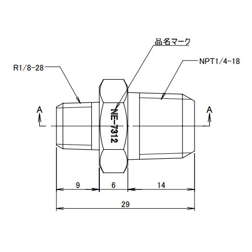 R1/8 inxNPT1/4 in異径六角ニップル(SUS製)