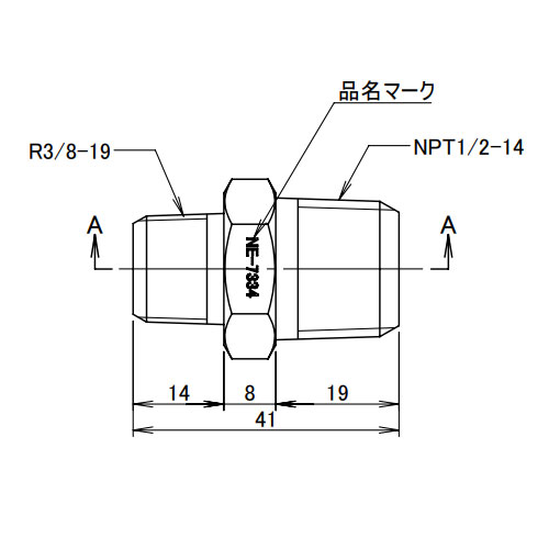 ●メーカー…アソー(ASOH) ●型番…NE-7334 ●ねじ径…R3/8’’×NPT1/2’’ ●内径…9mm、12mm ●六角対辺…24mm ●全長…41mm ●使用圧力…6.9MPa以下 ●使用温度範囲…-50度~150度 ●材質…SUS304 ●ねじのサイズ、規格の変換六角ニップル ●規格はRねじとNPTねじの変換に使用 ●六角がついているためスパナ掛けも容易で、しっかりと配管することができます。 ●参考在庫数・商品詳細・サイズ情報はメーカー(参考)URLからもご確認いただけます。 ●最小出荷単位: 1