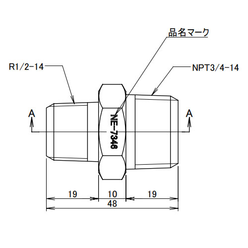 R1/2 inxNPT3/4 in異径六角ニップル(SUS製)