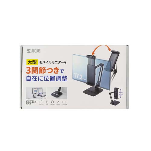 17.3インチまで対応。3関節のアームタイプで、前後上下の位置調整ができるアームスタンド