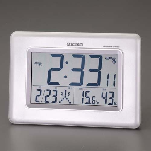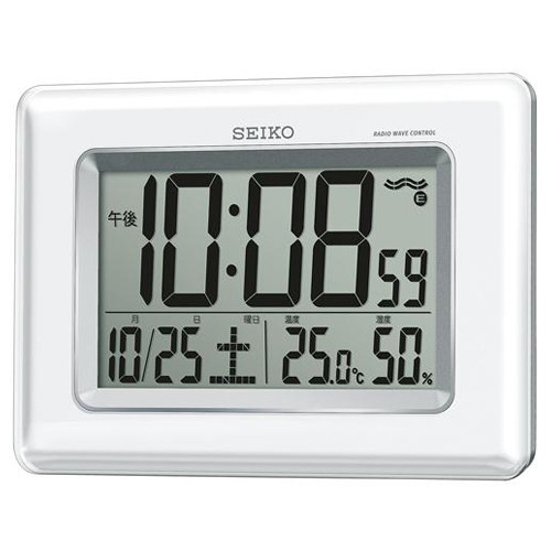 ●メーカー…セイコー(SEIKO)●型番…SQ424W●サイズ…250(W)×82(D)×170(H)mm(掛けた状態:250(W)×27(D)×170(H)mm、置いた状態:250(W)×82(D)×162(H)mm)●電源…単3マンガン電池×2本(付属)●周波数…40/60kHz自動選局●重量…470g●材質…プラスチック枠(白パール塗装)前面:ガラス●電池寿命…約1年間●温度表示…測定範囲:0~40℃測定精度:±2℃●湿度表示…測定範囲:25~85%RH測定精度:±8%(25℃)●デジタル文字高…最大57mm●注意…付属電池はテスト電池ですので新しい電池をご購入下さい。●電波受信機能●電波修正機能(40kHz/60kHz自動選局・受信OFF機能つき)●2099年までのフルオートカレンダー機能…うるう年でも修正がいらないカレンダーです●温湿度表示…お部屋のコンディション管理に便利です。●12時間制/24時間制切替式●掛置兼用●置用スタンド付●参考在庫数・商品詳細・サイズ情報はメーカー(参考)URLからもご確認いただけます。 ●最小出荷単位: 1