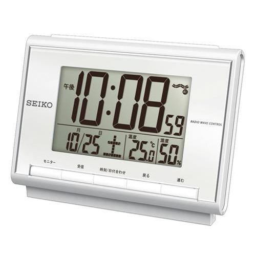 ●メーカー…セイコー(SEIKO)●型番…SQ698S●サイズ(mm)…120(W)×48(D)×85(H)●周波数…40/60kHz自動選局●電源…単3マンガン電池×2個(付属)●電池寿命…約1年間●重量…180g●材質…プラスチック枠(白パール)前面:プラスチック●温度表示…0~40℃(精度:±2℃)●湿度表示…25~85%RH(精度:±8%(25℃))●デジタル文字高…最大28mm●注意…付属電池はテスト電池ですので新しい電池をご購入下さい。●電波受信機能●電波OFF機能●2099年までのフルオートカレンダー機能…うるう年でも修正がいらないカレンダーです●簡単デジタル…前面の進む・戻るボタンで目覚まし時刻を設定できます●ライト…ライトで文字板面を照らします●温度・湿度表示…お部屋のコンディション管理に便利です。●スヌーズ付…アラームを止めても数分後に再び鳴り出します。寝坊の心配がありません。●アラームモニター機能…アラーム音をアラームセット時刻以外にも聞くことができます●電子音…アラーム(目覚まし)を電子音(ピピ音)でお知らせします●ダンダントーンアラーム(4段階)●アラームオートストップ機能(約5分間)●12時間制/24時間制切替式●参考在庫数・商品詳細・サイズ情報はメーカー(参考)URLからもご確認いただけます。 ●最小出荷単位: 1